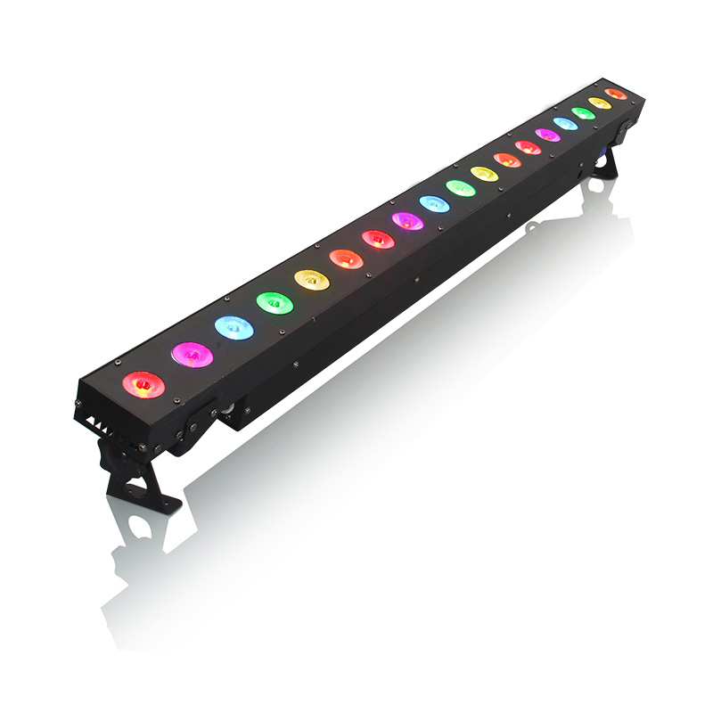 The PL-W-18TRI 18×3-in-1 LED Wall Washer Light is a powerful and versatile lighting fixture designed for stage, architectural, and event applications. Equipped with 18 high-performance 9W RGB 3-in-1 LEDs, it delivers bright, uniform color washes with smooth blending. The fixture supports pixel mapping, allowing each LED to be controlled individually for creative visual effects. With multiple DMX channel modes, strobe function, and flicker-free performance, the PL-W-18TRI is an ideal choice for both live shows and installations requiring dynamic lighting control.