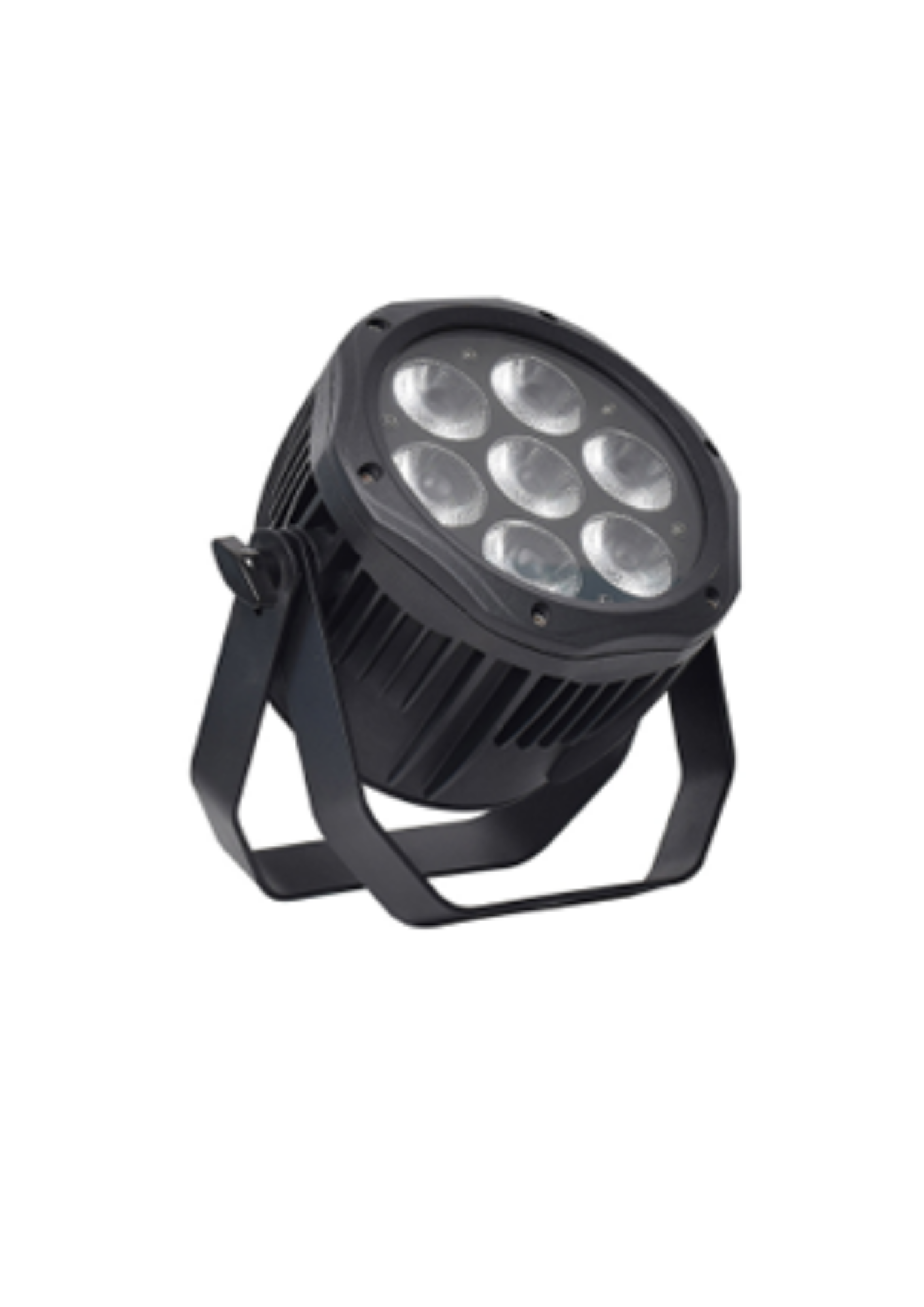 The PL-PWM-7QUAD is a professional IP65-rated LED PAR lighting fixture engineered for reliable performance in both indoor and outdoor environments. Utilizing seven high-efficiency 12W RGBW 4-in-1 LEDs, the fixture delivers powerful output with smooth color mixing, ensuring consistent and vibrant lighting effects across stage, event, and architectural applications.